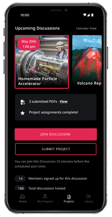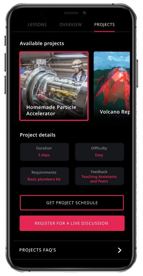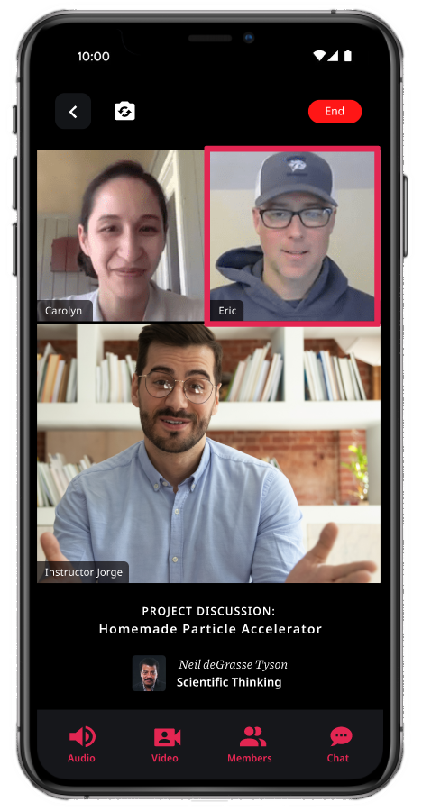 Once complete, users can join live, mediated discussions where they can meet their peers, talk about their projects, and ask questions to a trained instructor.