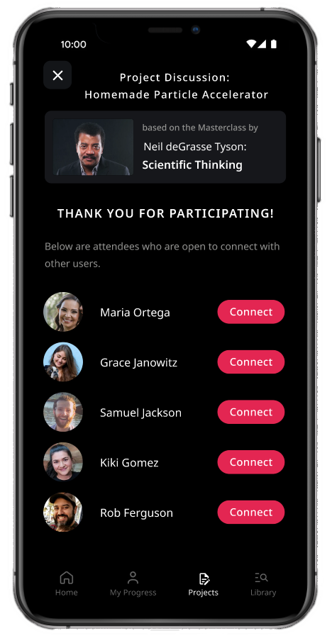 Projects: Users can complete projects at home that are based on Masterclass courses.