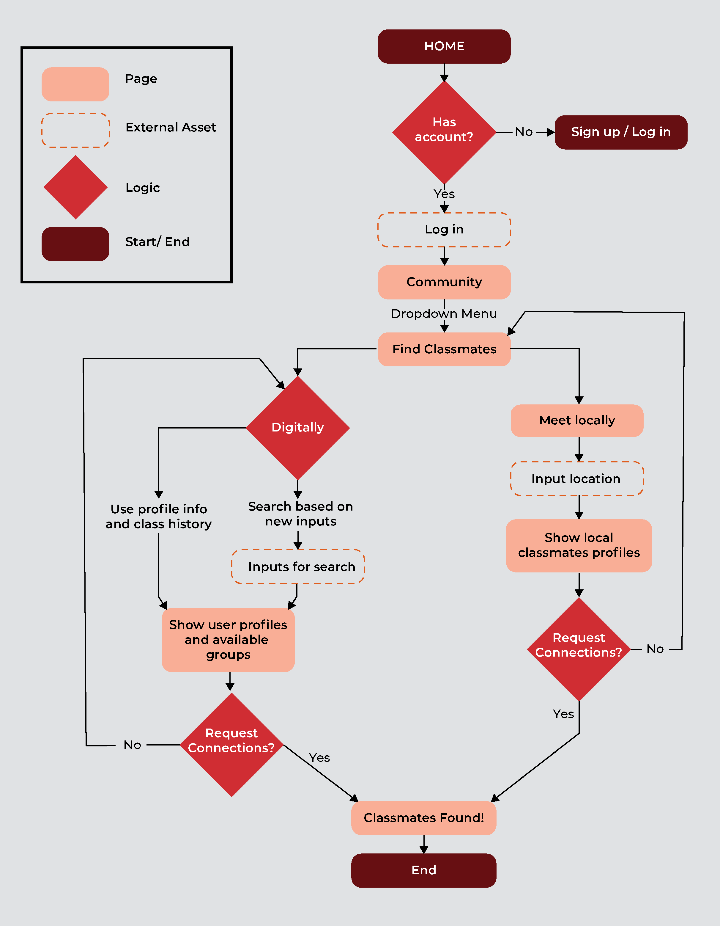 It was at this point where a concept formed. Based on the desired goals, and avoiding social media-type features, I realized my solution should: